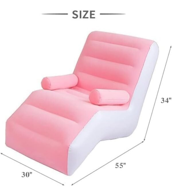 Inflatable Lounge Chair (02 Year Warranty), Pink and White, Portable Relaxation Recliner with Armrests, Quick 5-Minute Setup, 55x30x34 Inches