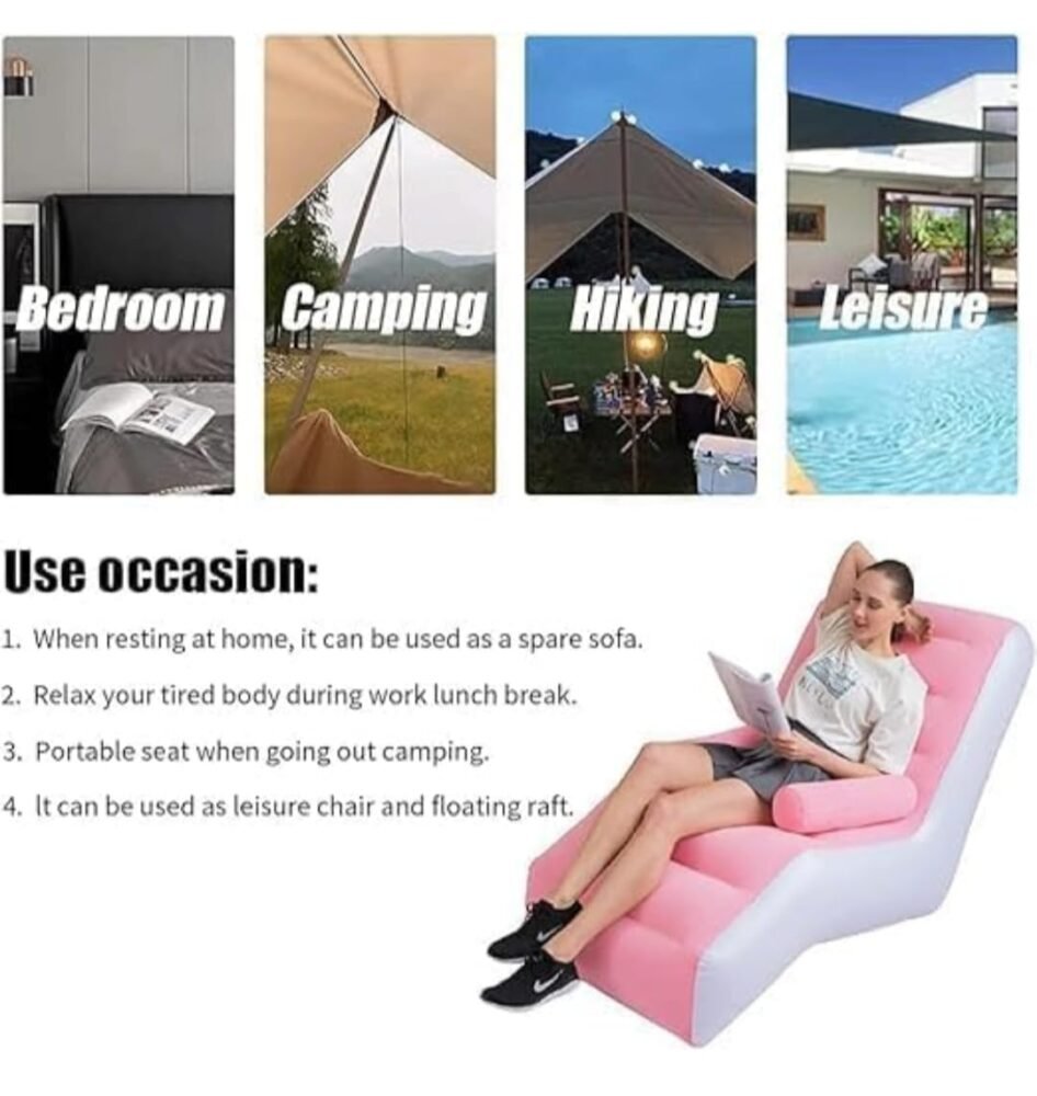 Be the first to review “Inflatable Lounge Chair (02 Year Warranty), Pink and White, Portable Relaxation Recliner with Armrests, Quick 5-Minute Setup, 55x30x34 Inches”