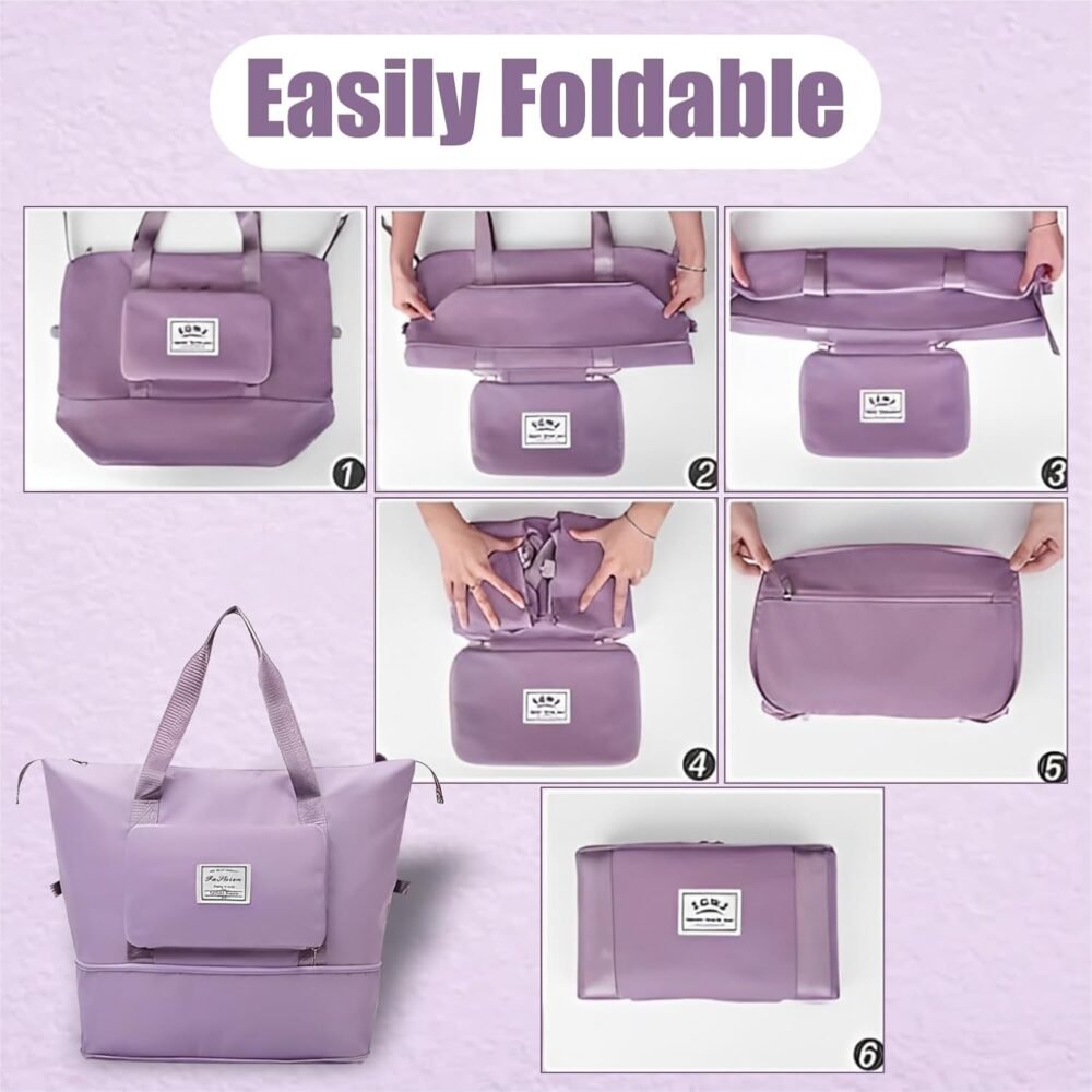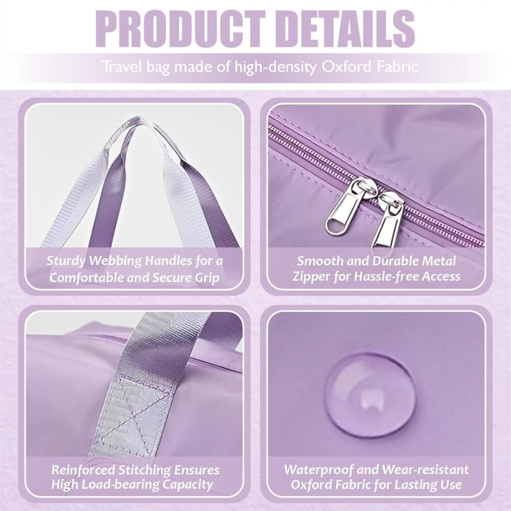 JD FRESH 41 Litre Expandable Nylon Travel Bags for Women/Duffle Bags for Women Luggage/Foldable Vanity Travelling Handbags/Waterproof Hand Bag for Ladies Personal Items (Taro Purple)