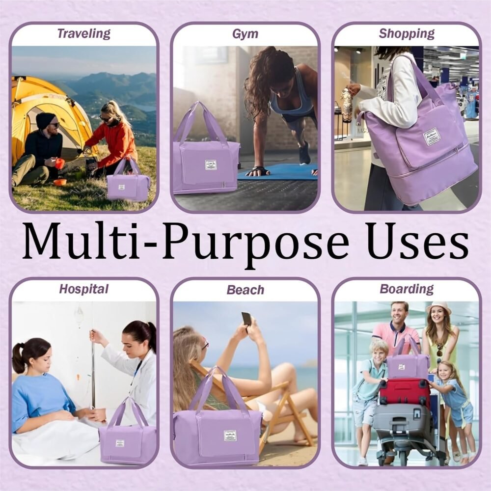 𝐌𝐮𝐥𝐭𝐢𝐩𝐮𝐫𝐩𝐨𝐬𝐞 𝐓𝐫𝐚𝐯𝐞𝐥 𝐁𝐚𝐠: Use it as a travel duffle bag for women luggage, overnight bag, hospital bag, or hiking tote. Lightweight yet versatile, this folding bag for travelling suits women, men, and kids alike ideal as a women office bag or college gym companion.