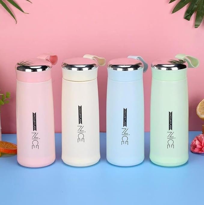 Stay hydrated in style with these elegant thermal water bottles in delightful pastel shades. Available in soothing purple, blue, mint green, pink, and cream colours, each bottle features a sleek minimalist design with a secure screw-top lid and convenient carrying strap. The double-walled construction helps maintain your beverage’s temperature, keeping drinks cold or hot for extended periods. The slim profile makes it perfect for your desk, gym bag, or daily commute. Each bottle has a practical capacity and is lightweight enough for everyday use. The smooth matte finish provides a premium feel while being easy to grip. The wide-mouth opening allows for easy filling and cleaning, while the leak-proof seal ensures worry-free transport. These bottles are ideal for office use, outdoor activities, or simply staying hydrated throughout your day in sophisticated style.