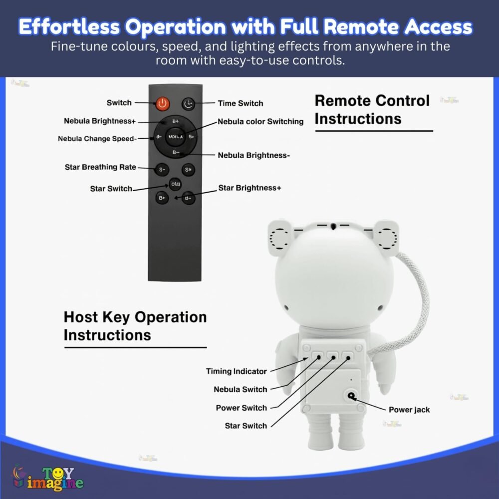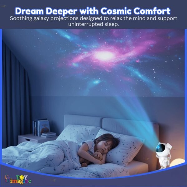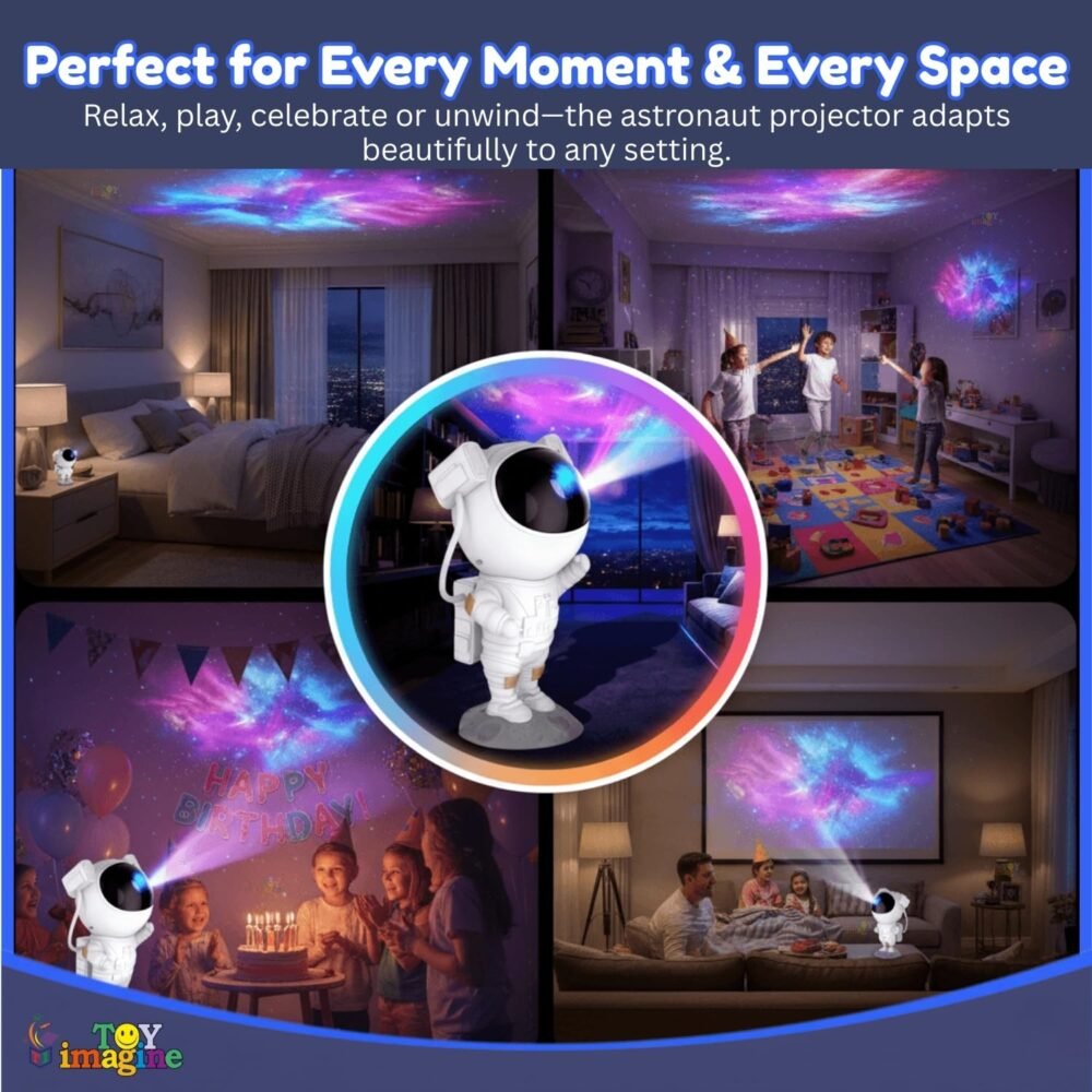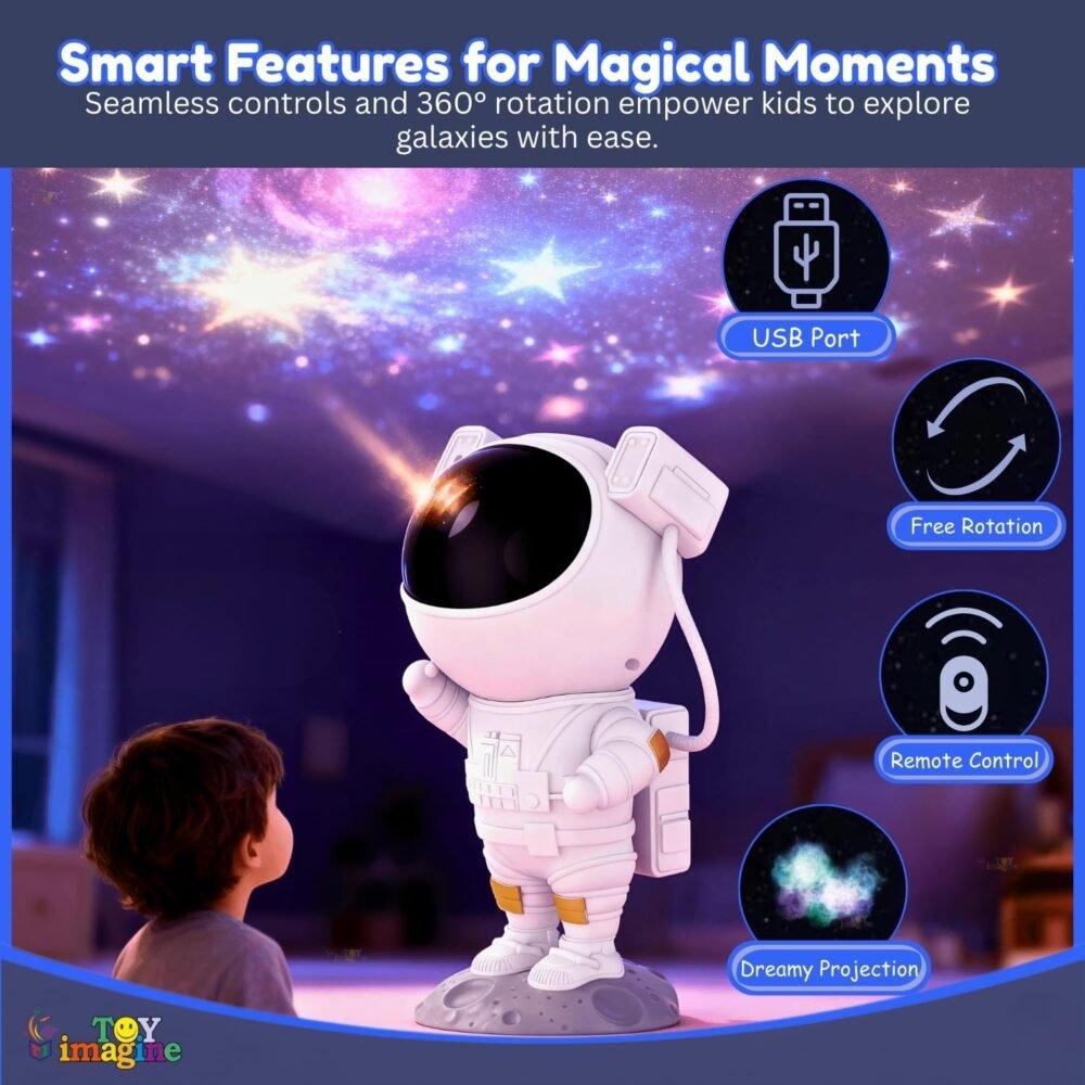 • Space-Themed Night Light & Room Decor – Brighten your child’s bedroom with this TOY IMAGINE astronaut projector lamp that creates a mesmerizing galaxy light show, perfect for kids’ room decoration and night light use.
