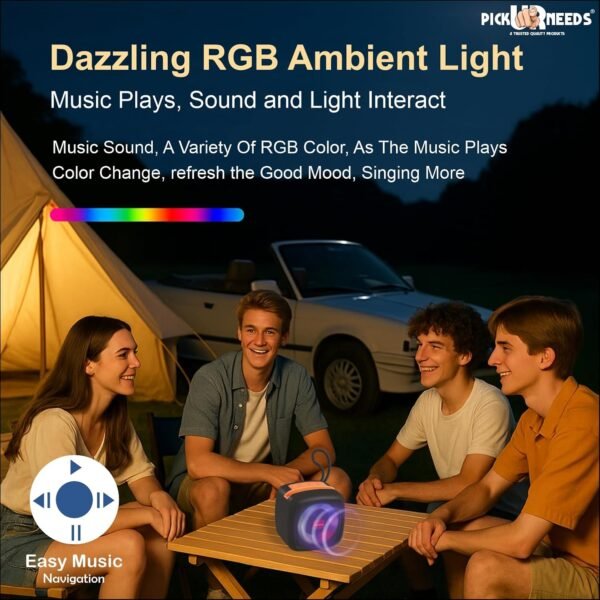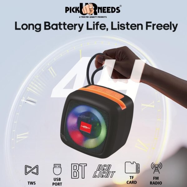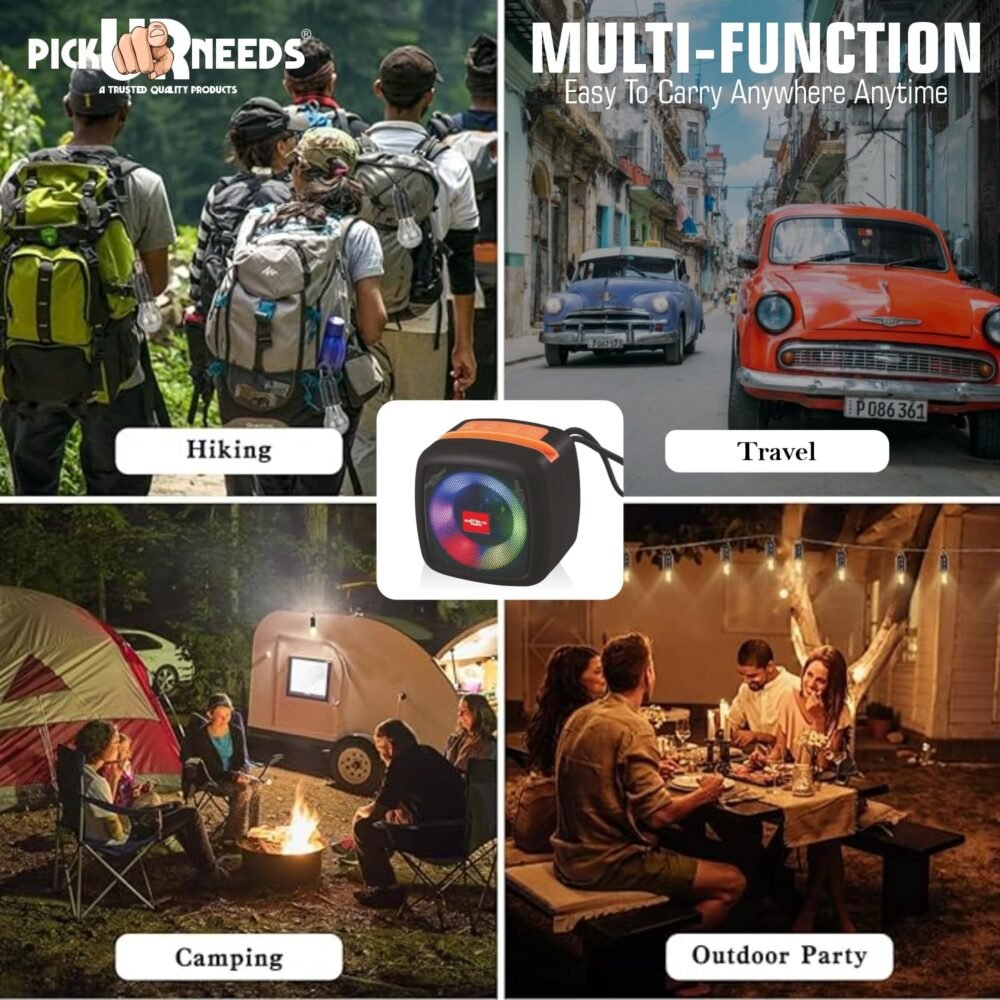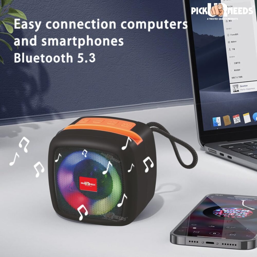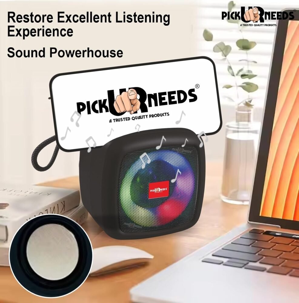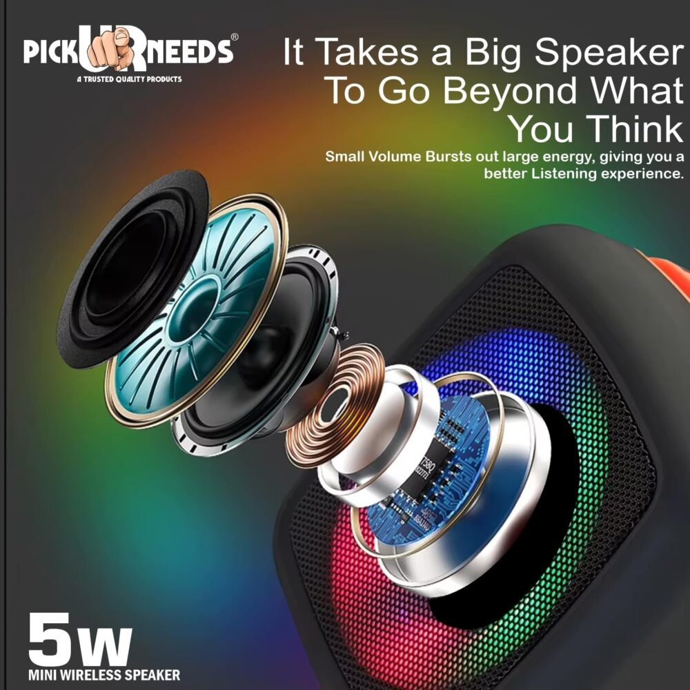 Pick Ur Needs 5W Portable Wireless Extra Bass Mini DJ Bluetooth Speaker with RGB Lightshow, True Wireless Pairing, Long Battery Life, Party Speakers for Outdoor & Indoor Use (Black)