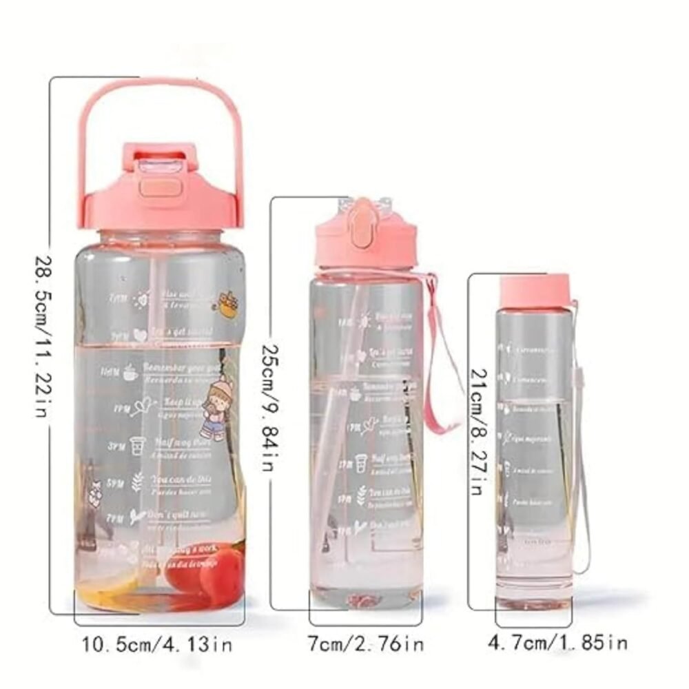 Plastic || 3-in-1 Transparent Water Bottle Set (2000ML, 900ML, 300ML) with Motivational Time Markers, Leakproof & Gym Bottles, Fitness, Travel (3 Pics Transparent Water Bottle Multicolor, 1)