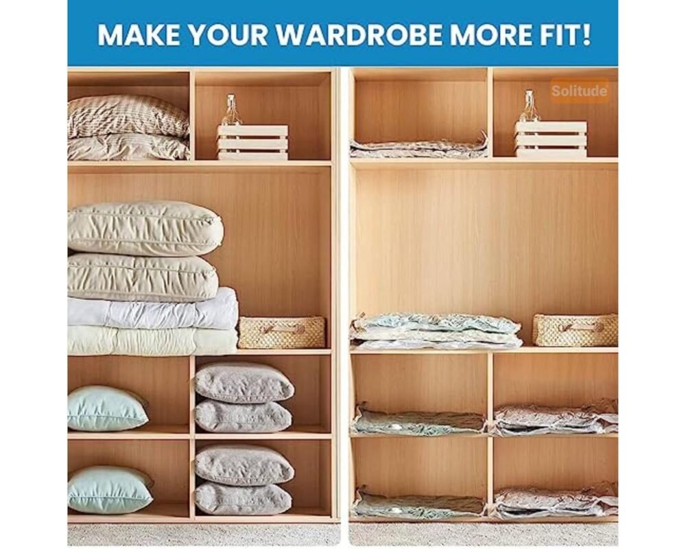 EFFICIENT STORAGE SOLUTION: Solitude vacuum bags provide an efficient solution for storing and organizing your items, saving you valuable time and effort. With our bags, you can quickly and easily pack and store your items, making it easier to find what you need and freeing up space in your home or luggage.