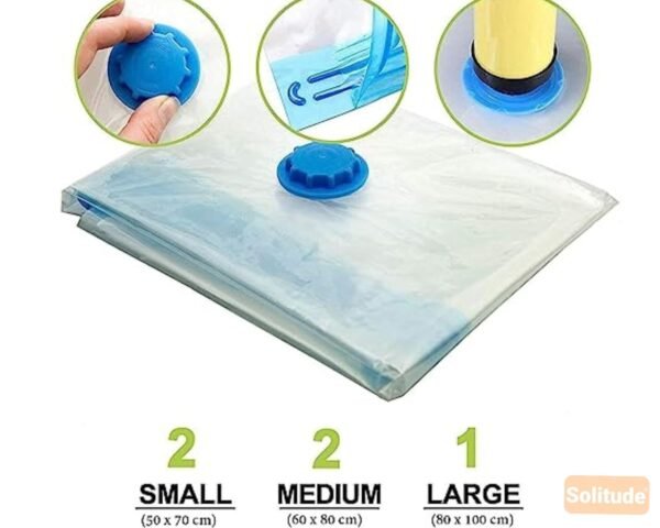Be the first to review “Solitude Reusable Vacuum Storage Bags (2S+2M+1L Bags, 1 Pump) for Clothes, Blankets and Bedding – Space-Saving Solution with Hand Pump for Travel and Home Storage” Cancel reply