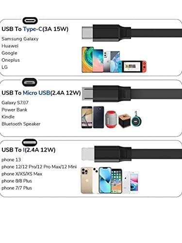 FAST CHARGING CABLE: This universal charging cable can simultaneously charge android, iOS and Type C devices. The charging cable is designed to charge the devices quickly.